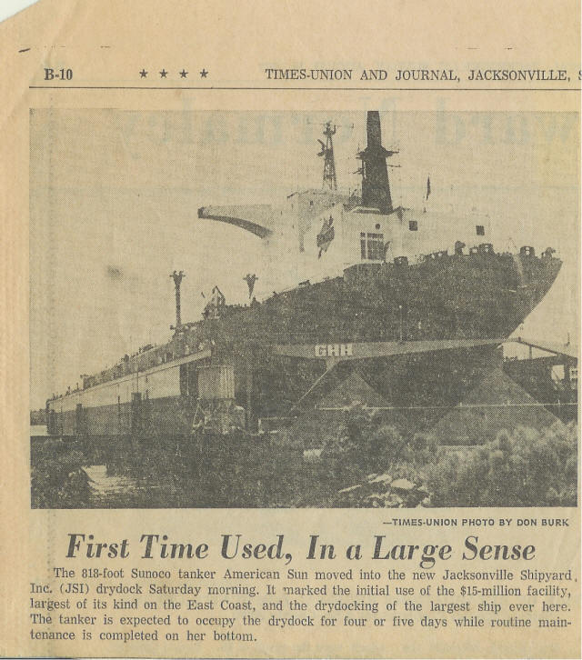 | The Sunoco supertanker America Sun in Jacksonville Shipyards, Inc., Jacksonville, Fl.- August 19, 1973 |